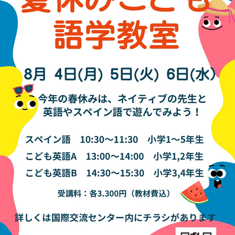 本日より、夏休みこども語学教室の受付が始まりました!ネイティブ講師と一緒に、楽しく英語とスペイン語を学んでみませんか。