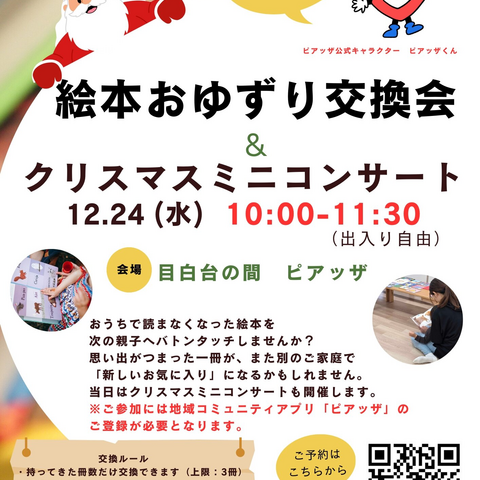 📚絵本おゆずり交換会&クリスマスミニコンサート🎄を予定しています😊